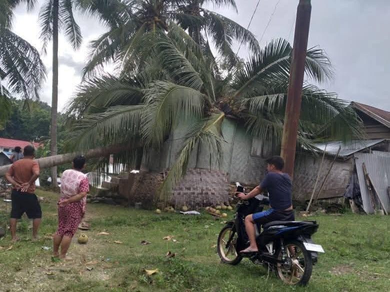Di Desa Ayuhula, Kecamatan Dungaliyo, Kabupaten Gorontalo, sebuah pohon kelapa tumbang dan menimpa rumah warga. Akibat kejadian tersebut, bagian rumah mengalami kerusakan. Tidak ada korban jiwa yang dilaporkan.
