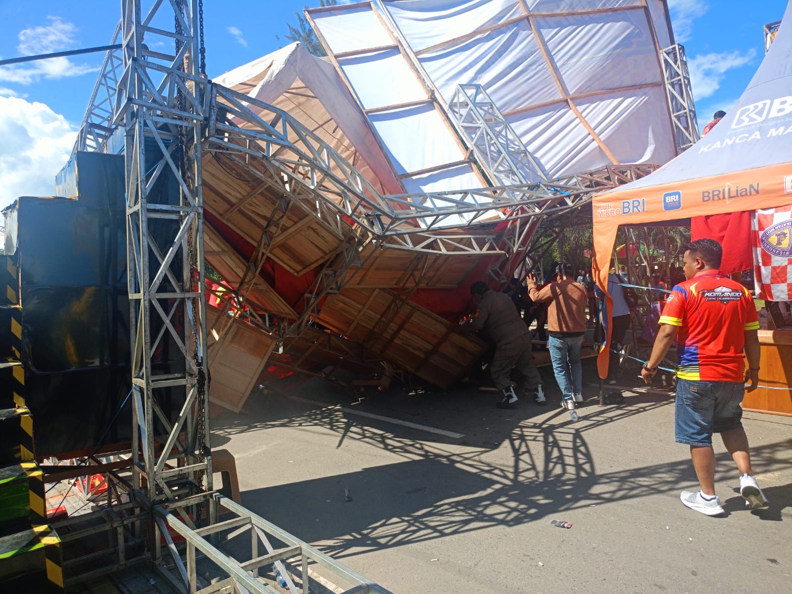 Dalam pantauan di lapangan, peristiwa ini terjadi tepat saat acara pembukaan baru dimulai yang dihadiri oleh para peserta, panitia, serta tamu undangan. Rangkaian struktur panggung yang tak mampu menopang beban akhirnya roboh, menyebabkan sejumlah peralatan jatuh berserakan dan menimbulkan kepanikan di area sekitar.