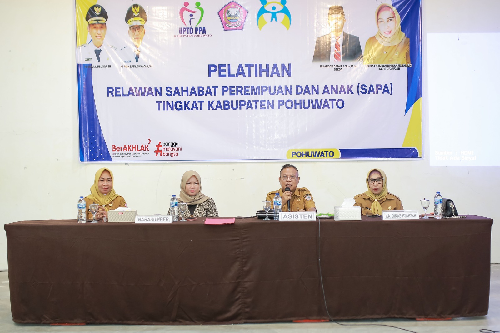 Pelatihan ini dihadiri oleh Kepala Dinas Pemberdayaan Perempuan, Perlindungan Anak, Pengendalian Penduduk, dan Keluarga Berencana (DP3AP2KB) Kabupaten Pohuwato, Nizma Sanad, narasumber, Oktavianita Telinga, S.Si, serta para kepala desa dari wilayah asal relawan SAPA.